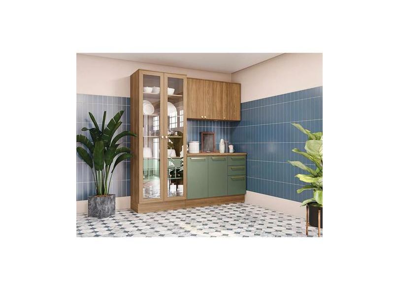 Cozinha Compacta Botanic 7 Pt 4 Gv Nogueira E Verde - Kappesberg