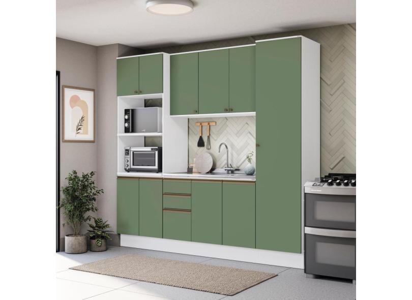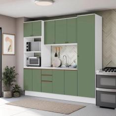 O menor preço encontrado no Brasil para Cozinha Compacta Celeste Kappesberg 100% mdf Branco/Verde 240cm atualmente é R$ 2.249,99.