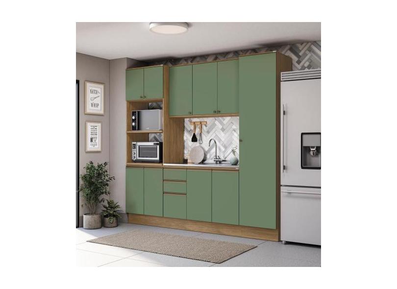 O menor preço encontrado no Brasil para Cozinha Compacta Celeste Kappesberg 100% mdf Nogueira/Verde 240cm atualmente é R$ 2.279,99.