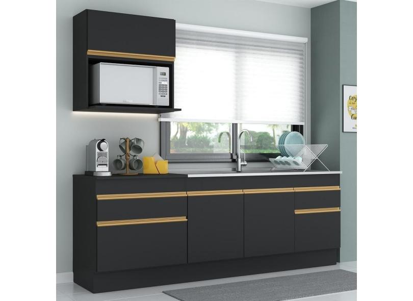 Cozinha Compacta Com Rodapé Com Armário E Balcão Preta