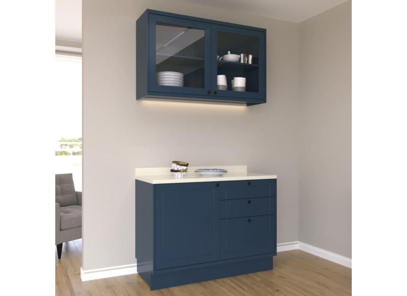 O menor preço encontrado no Brasil para Cozinha Compacta Com Vidro 2 Peças 3 Portas 3 Gavetas Sevilha Azul Órion/Cinza Argila atualmente é R$ 1.352,64.