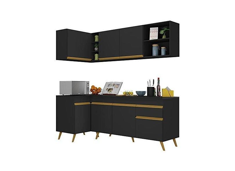 Cozinha Compacta de Canto Veneza Gb Multimóveis Mp2058 com Armário e Balcão Preta