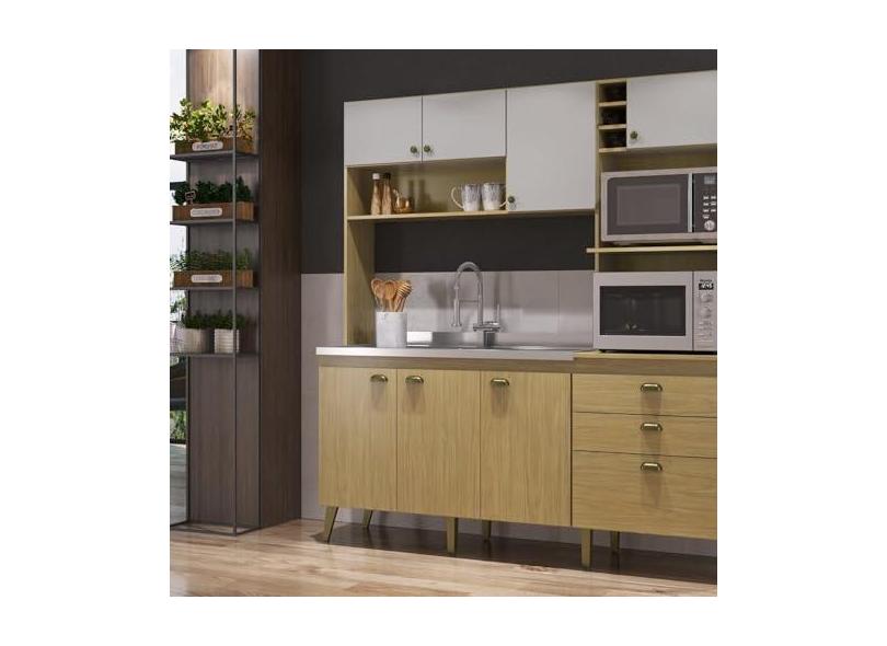 O menor preço encontrado no Brasil para Cozinha Compacta Donna 8 Portas 2 Gavetas com Nichos e com Espaço Forno e Micro-ondas 186,5cm Louro Freijó/Off White atualmente é R$ 860,43.