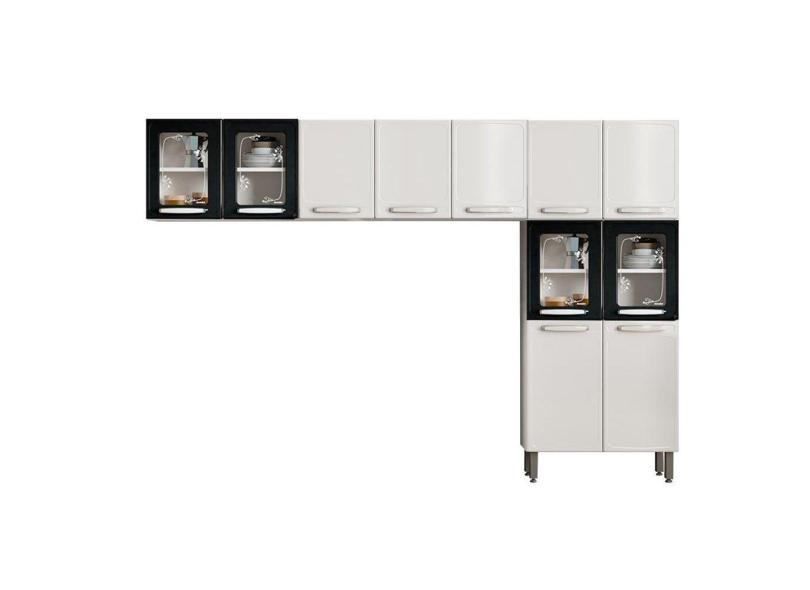 Cozinha Compacta Evidence 3 Peças (2 Armários + 1 Paneleiro) CPT55 Branco/Preto - Bertolini