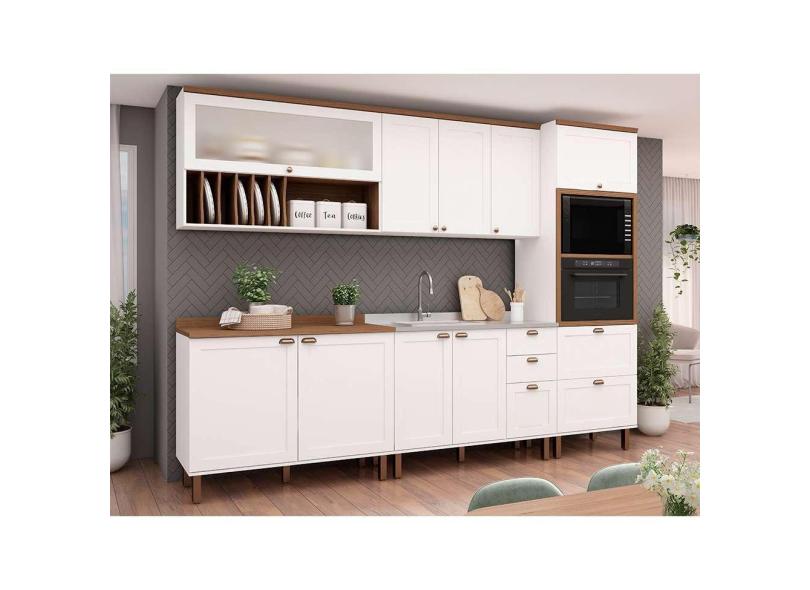 Cozinha Compacta Iluminata Luna com Vidro 10 pt 4 gv Branca e Ébano