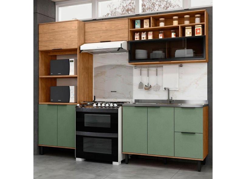 O menor preço encontrado no Brasil para Cozinha Compacta Laura 7 Portas 3 Gavetas com Vidro 100% Mdf Freijo/Jade - Mx Móveis atualmente é R$ 1.482,68.