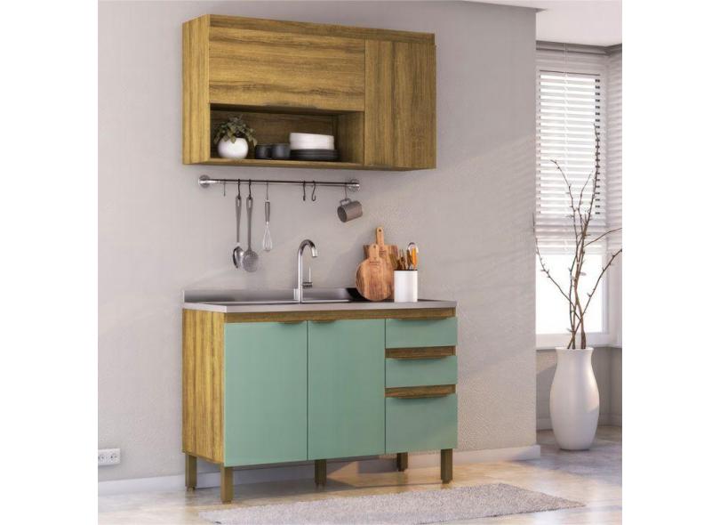 Cozinha Compacta Magnólia com Armário Aéreo 4 PT 3 GV Mel e Verde