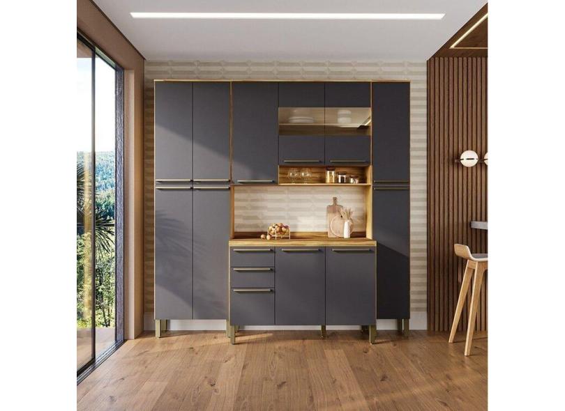 O menor preço encontrado no Brasil para Cozinha Compacta Modulada 4 Peças 12 Portas e 2 Gavetas com Vidro e Tampo Itália Espresso Móveis Amêndoa/Cinza atualmente é R$ 1.423,79.