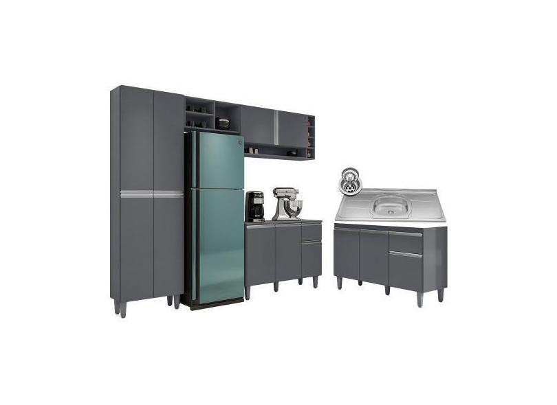 Cozinha Compacta Vanessa E Balcão Gabinete Com Pia Tatiane 120cm Cinza
