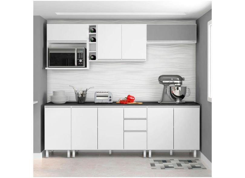 Cozinha Completa 10 Portas 2 Gavetas Branco Com Prata