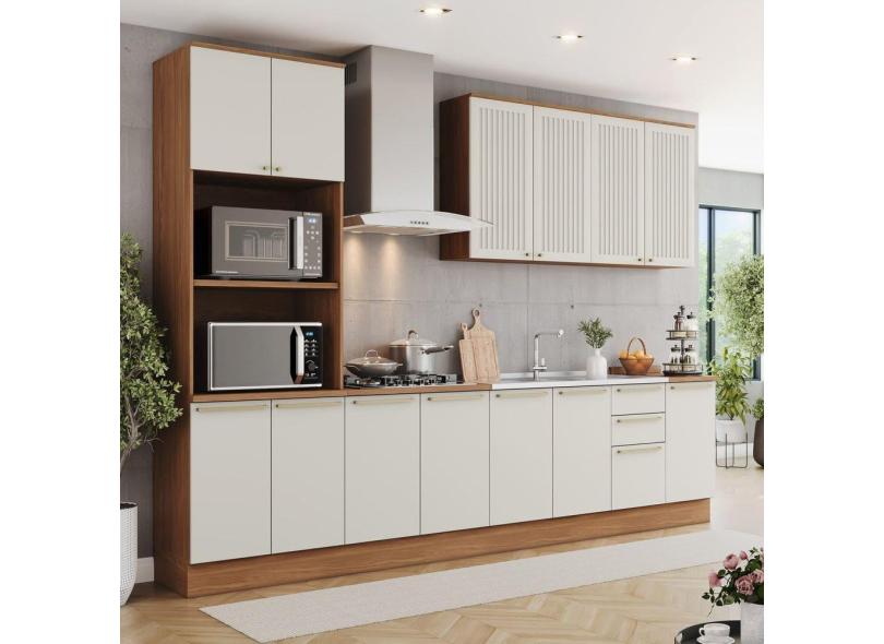 O menor preço encontrado no Brasil para Cozinha Completa 6 Peças com Torre Quente Yasmin Espresso Móveis Marrom/Areia atualmente é R$ 3.599,98.