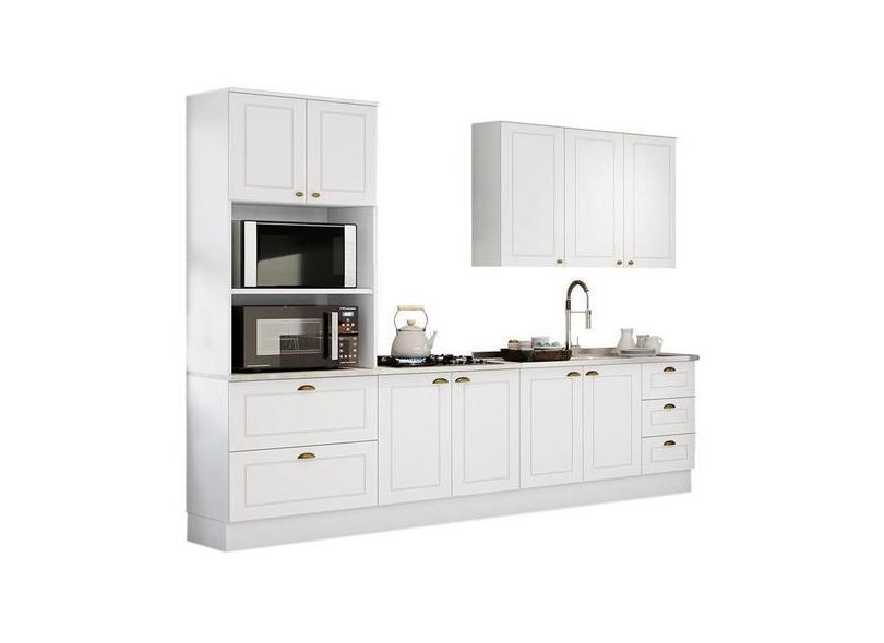 O menor preço encontrado no Brasil para Cozinha Completa Americana 4 Peças Branco com Torre Quente - Móveis He atualmente é R$ 2.614,60.