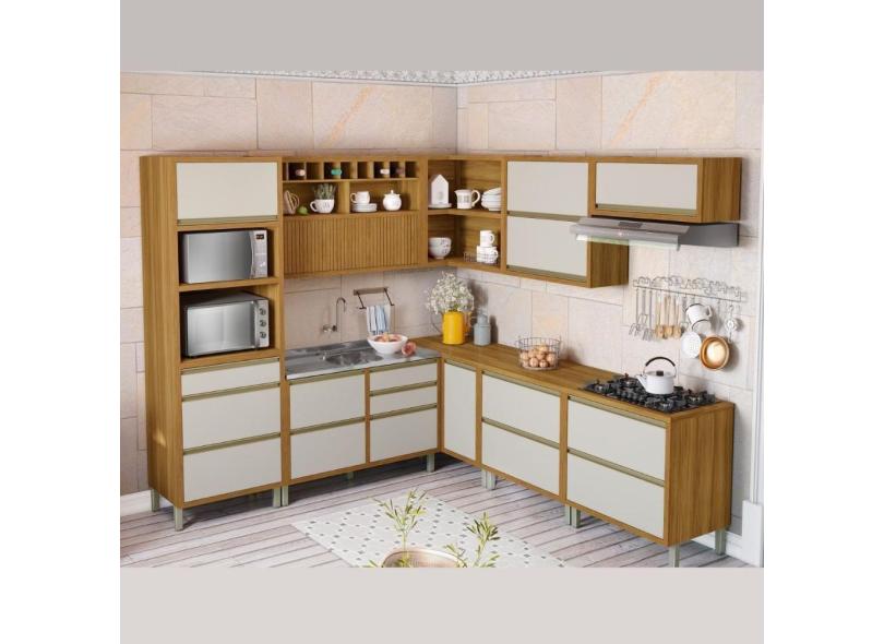 Cozinha Completa Baronesa MDF 9 Peças Marrom Freijó Off White