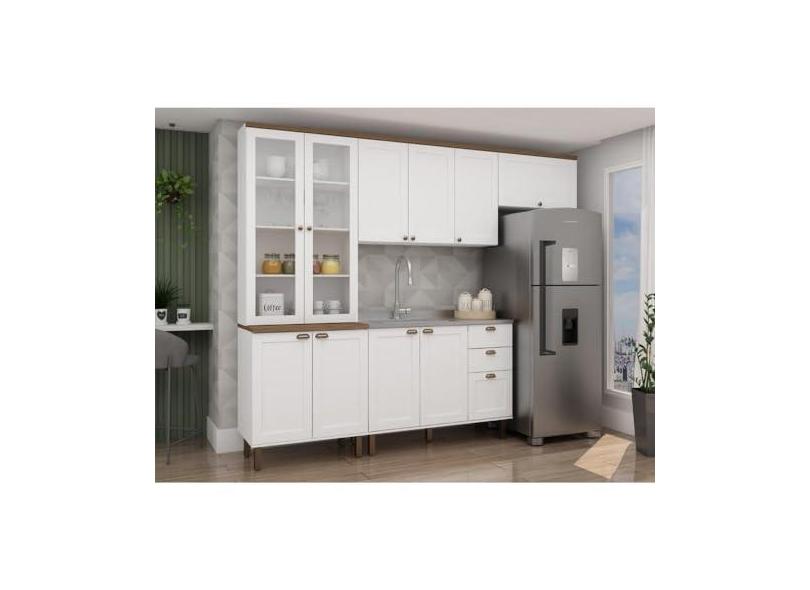 O menor preço encontrado no Brasil para Cozinha Completa com Cristaleira 100% Mdf Iluminata Branco/ébano atualmente é R$ 2.133,31.