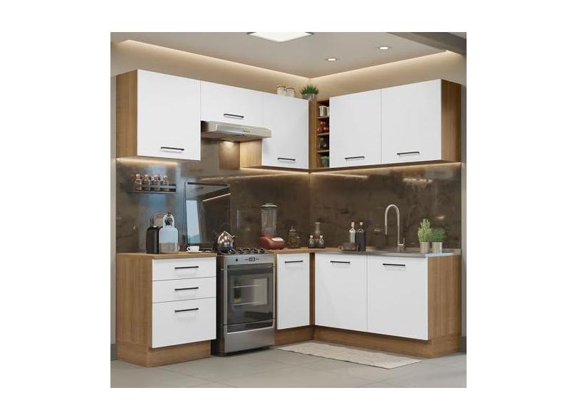 O menor preço encontrado no Brasil para Cozinha Completa de Canto Madesa Agata 399002 com Armário e Balcão (sem Tampo e Pia) - Rustic/branco atualmente é R$ 2.354,49.
