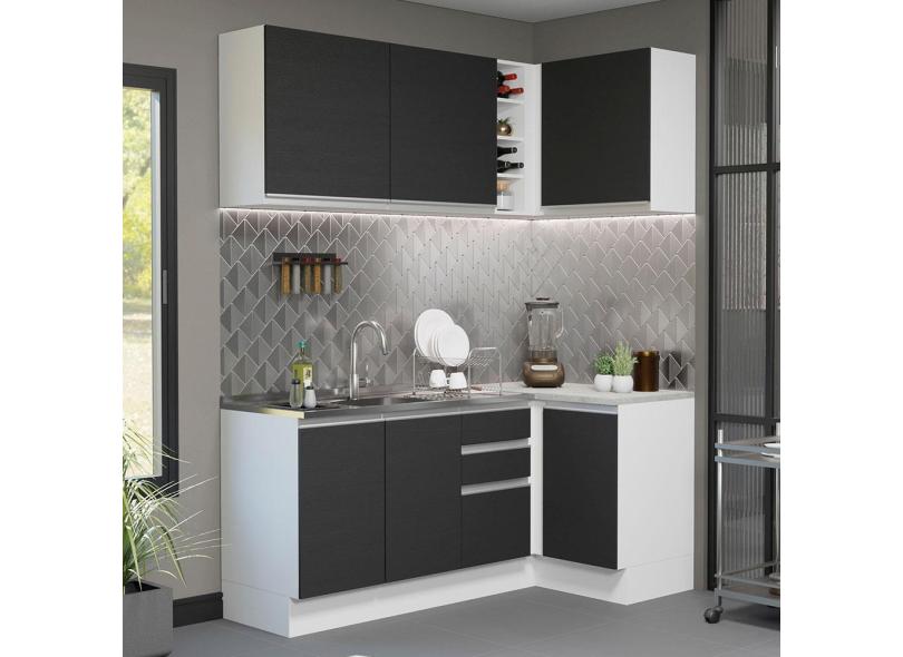 Cozinha Completa de Canto Madesa Glamy 269001 com Armário e Balcão (Sem Tampo e Pia) - Branco/Preto