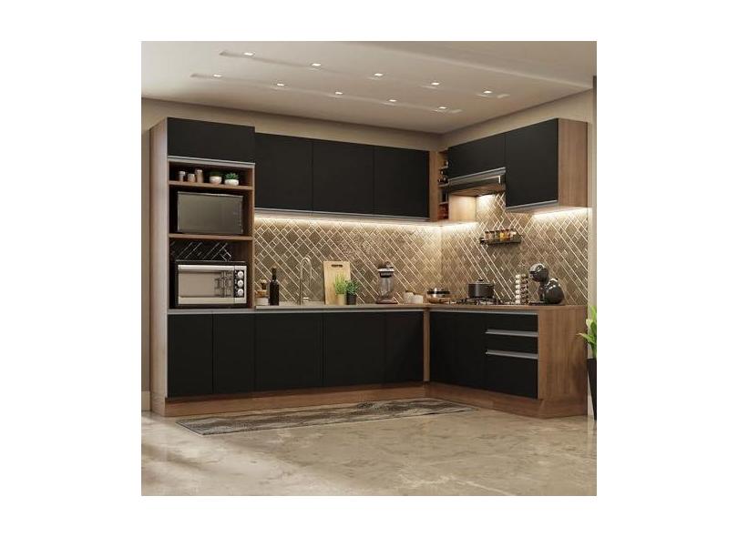 O menor preço encontrado no Brasil para Cozinha Completa de Canto Madesa Glamy 479001 com Armário e Balcão (sem Tampo e Pia) - Rustic/preto atualmente é R$ 3.484,99.