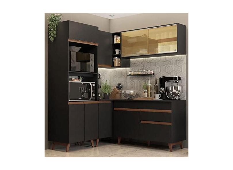 O menor preço encontrado no Brasil para Cozinha Completa de Canto Madesa Reims 332001 com Armário e Balcão - Preto atualmente é R$ 1.614,99.
