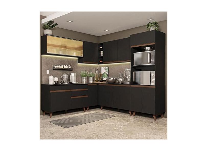 O menor preço encontrado no Brasil para Cozinha Completa de Canto Madesa Reims 452001 com Armário e Balcão - Preto atualmente é R$ 2.209,99.