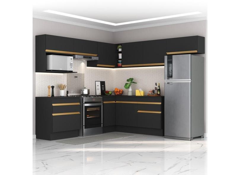 Cozinha Completa De Canto Multimóveis Armário Balcão Preta