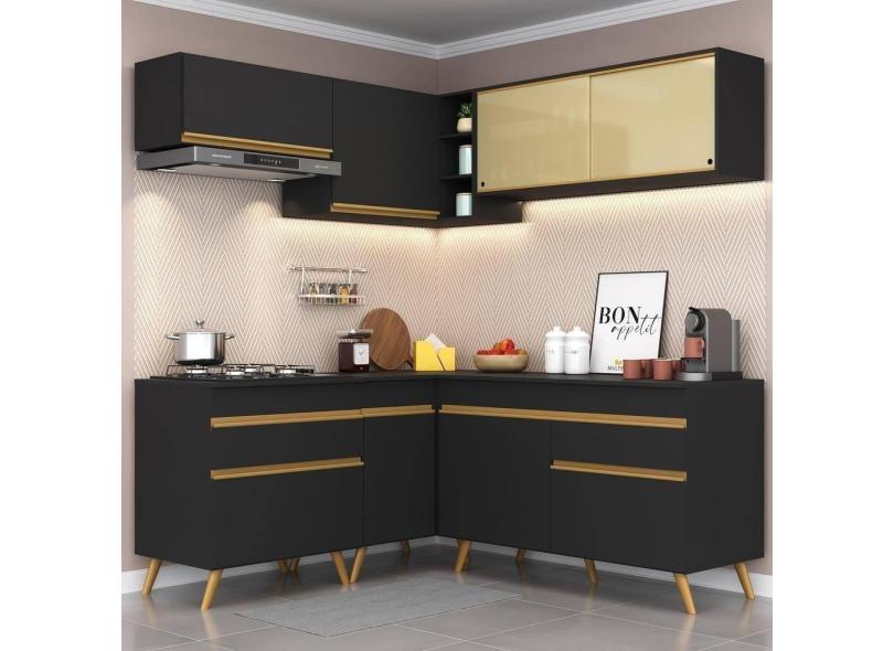 Cozinha Completa De Canto Veneza Gb Mp2062 Com Armário E Balcão Preta