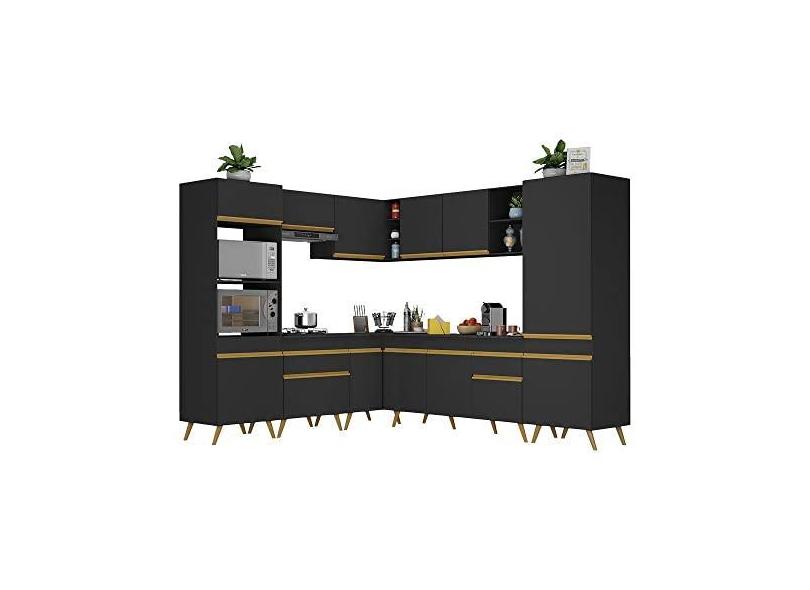Cozinha Completa de Canto Veneza Gb Multimóveis Mp2046 com Armário e Balcão Preta