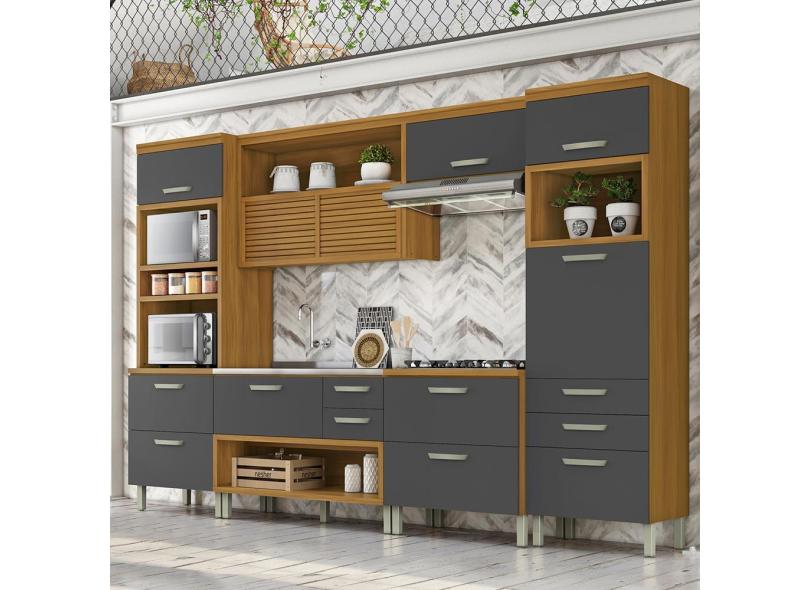 O menor preço encontrado no Brasil para Cozinha Completa em MDF Nesher Princesa com 8 Portas 7 Gavetas e 17 Prateleiras - Freijo/Grafite 334cm atualmente é R$ 3.879,03.