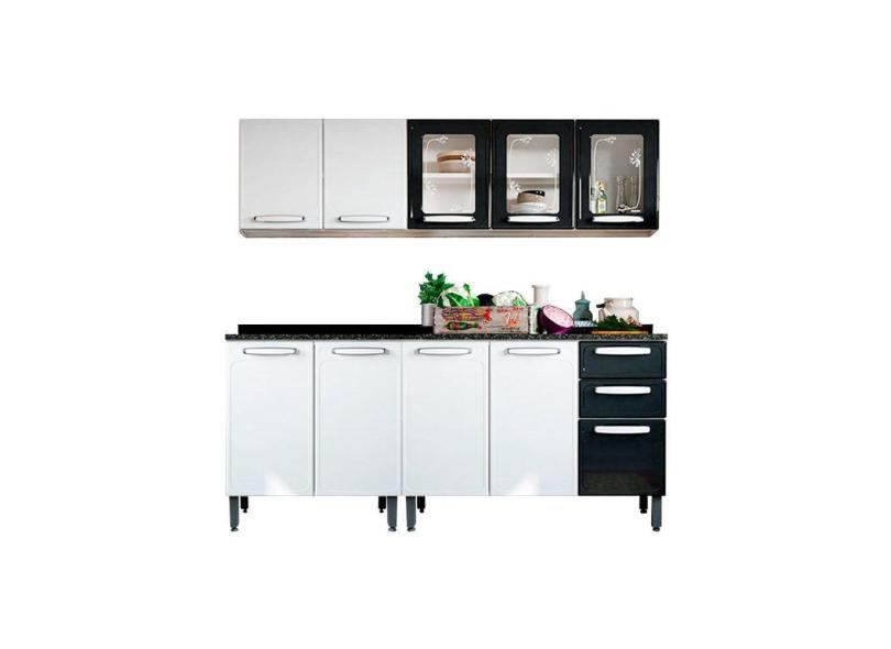 Cozinha Completa Evidence 4 Peças (2 Armários + 2 Balcões) C4P38 Branco/Preto - Bertolini