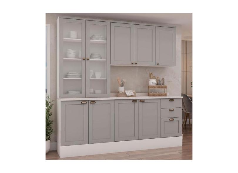 O menor preço encontrado no Brasil para Cozinha Completa Iluminata 9 Portas 3 Gavetas 100% Mdf com Vidro Branc atualmente é R$ 2.254,42.