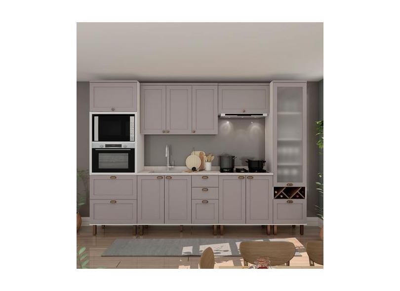 O menor preço encontrado no Brasil para Cozinha Completa Iluminata Ayla 10 Portas 3 Gavetas 100% Mdf com Vidro atualmente é R$ 3.431,18.