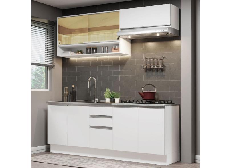 Cozinha Completa Madesa Glamy 200003 com Armário e Balcão (Sem Tampo e Pia) - Branco