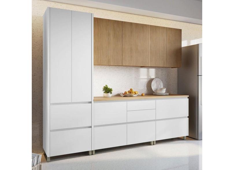 Cozinha Completa Rainha 8 Portas 7 Gavetas Ripado 100% Mdf Branco/Natural - Nesher