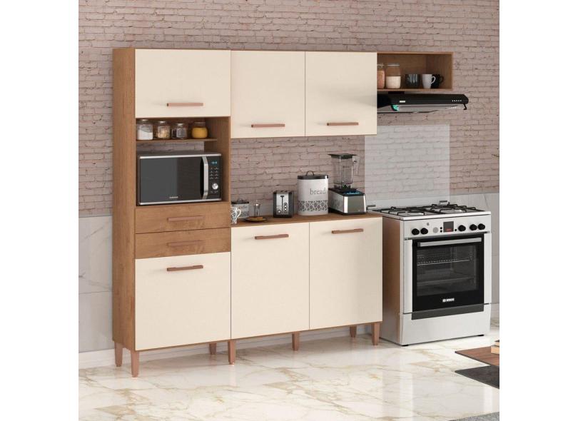 Cozinha Completa Salinas Top 6 Portas 2 Gavetas Canelato Rustico/Natural/Off White - Atualle Móveis
