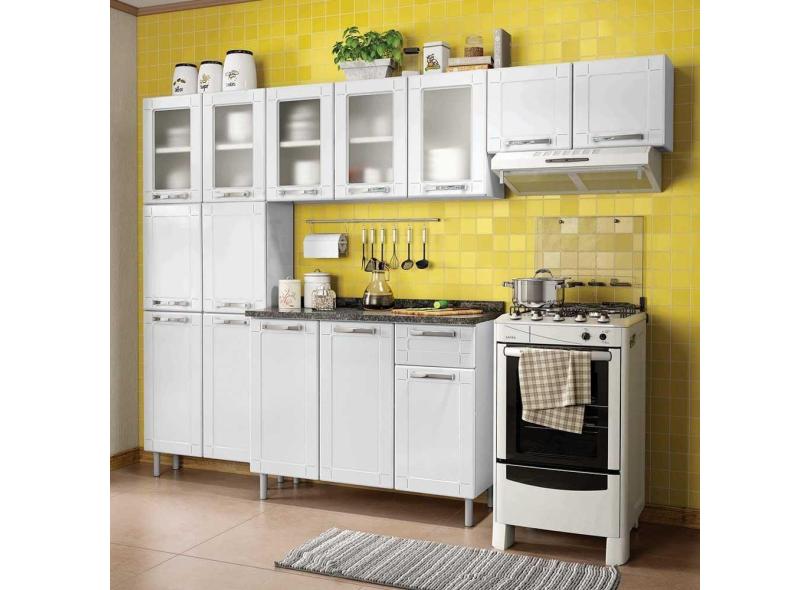O menor preço encontrado no Brasil para Cozinha de Aço Compacta 4 Peças com 14 Portas Vidro Temperado e 1 Gaveta Multipla Bertolini Branco atualmente é R$ 1.665,92.