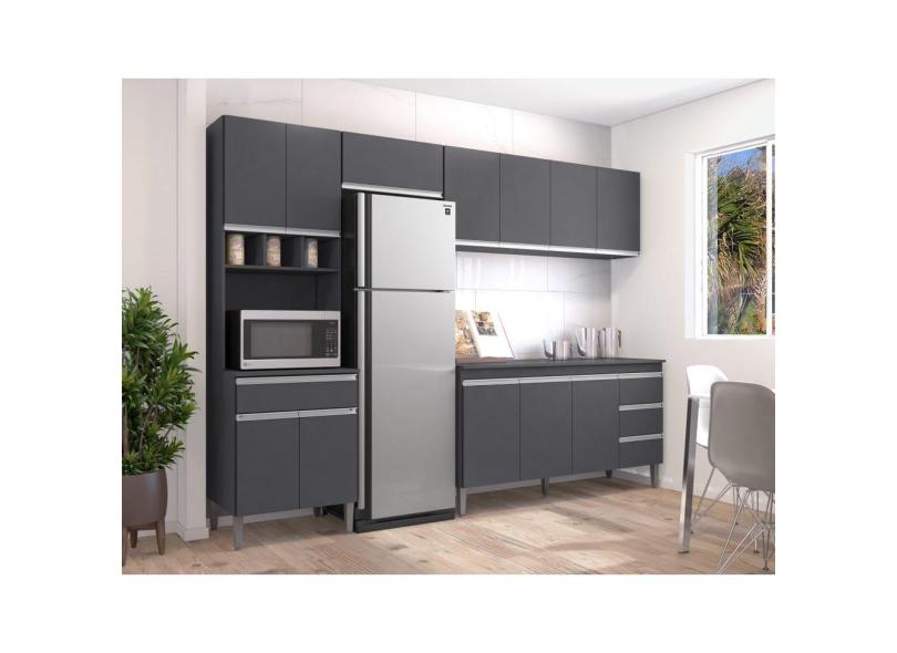 Cozinha Modulada 2,80m Andréia 12 Portas 4 Gavetas com Balcão Cor Cinza ajl
