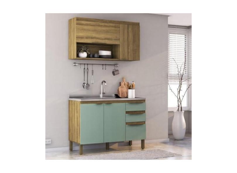 O menor preço encontrado no Brasil para Cozinha Modulada 2 Peças 1 Aéreo 1 Balcão Magnólia Mel/Verde atualmente é R$ 927,74.