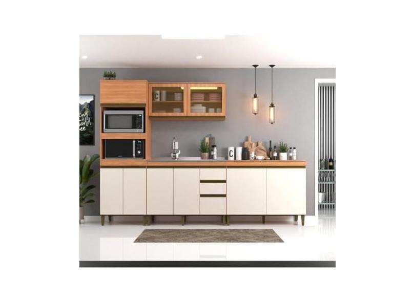 Cozinha Modulada 4 Peças 9 Portas 3 Gavetas 310cm Freijó/off White