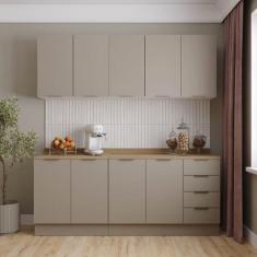 Cozinha Modulada 4 Peças com Tampo com Rodapé 2 Aéreos e 2 Balcões Ipanema CabeCasa MadeiraMadeira Fendi Trama/Acácia