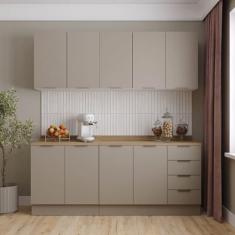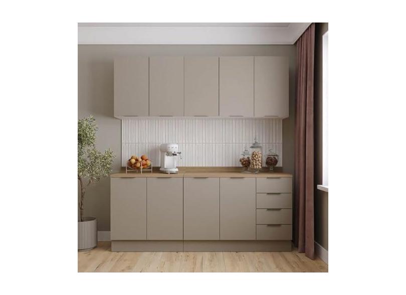 Cozinha Modulada 4 Peças com Tampo com Rodapé 2 Aéreos e 2 Balcões Ipanema CabeCasa MadeiraMadeira Fendi Trama