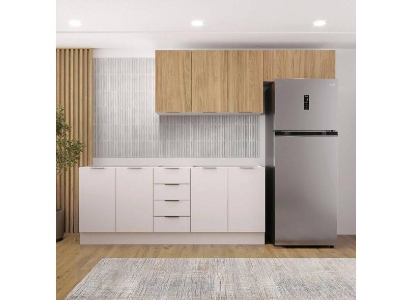 Cozinha Modulada 4 Peças sem Tampo com Rodapé 2 Aéreos e 2 Balcões Ipanema Cabecasa Madeiramadeira Branco/Acácia