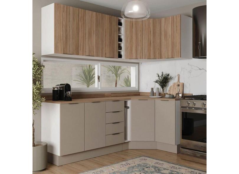 Cozinha Modulada 8 Peças com Tampo com Rodapé 4 Aéreos e 4 Balcões Ipanema Cabecasa Madeiramadeira Cinza Trama/ Acácia