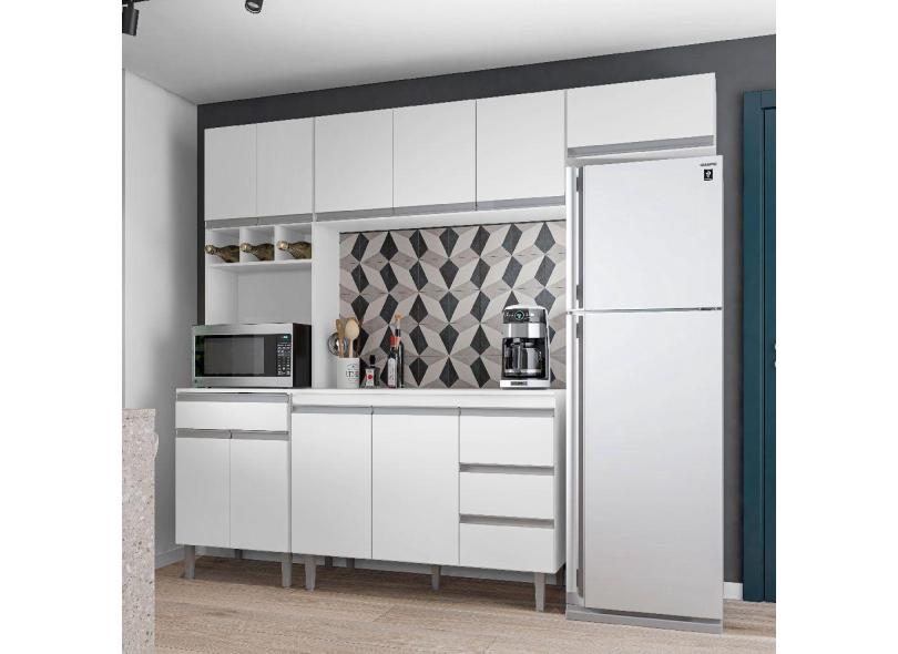 Cozinha Modulada Andréia 2,40m 10 Portas 4 Gavetas E Balcão Com Tampo Branco - Ajl