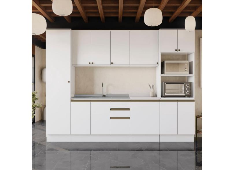 O menor preço encontrado no Brasil para Cozinha Modulada Celeste Kappesberg 100% mdf Branco 300cm atualmente é R$ 2.474,99.