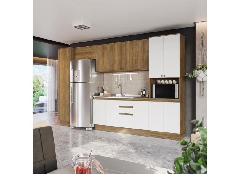 Cozinha Modulada Celeste Kappesberg 100% MDF Nogueira/Branco 8 Peças