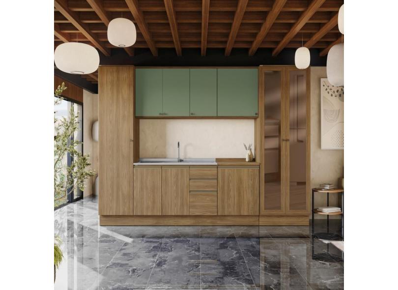 Cozinha Modulada Celeste Kappesberg 100% mdf Nogueira/Verde 7 Peças