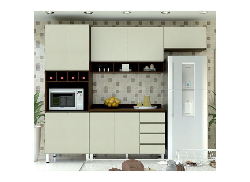Cozinha Modulada Compacta com Tampo 4 Peças Nogueira Dourado com Kashmir Jade Luciane Móveis