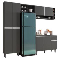 O menor preço encontrado no Brasil para Cozinha Modulada Completa 230cm Com Balcão E Armário Aéreo Vanessa Cinza Escuro - Ajl Móveis atualmente é R$ 986,90.