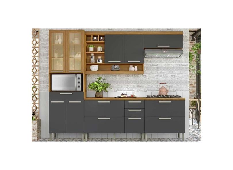 Cozinha Modulada Completa Burguesa Premium 5 Peças (2Aéreos+2Balcões+1Paneleiro) C6P56 Freijo/Grafite - Nesher
