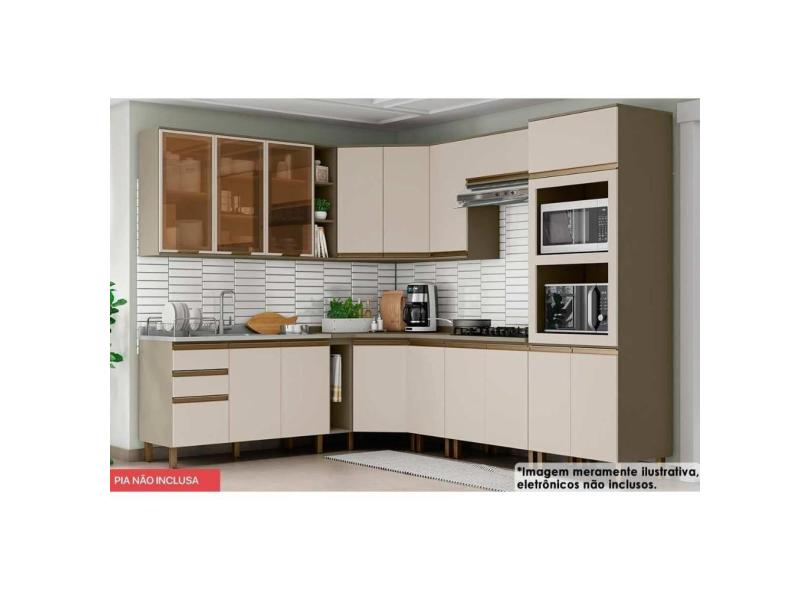 Cozinha Modulada Completa Connect 15 Peças (5Aéreos+5Balcões+1Paneleiro+4Complementos) C6P14 Duna/Cristal - Henn