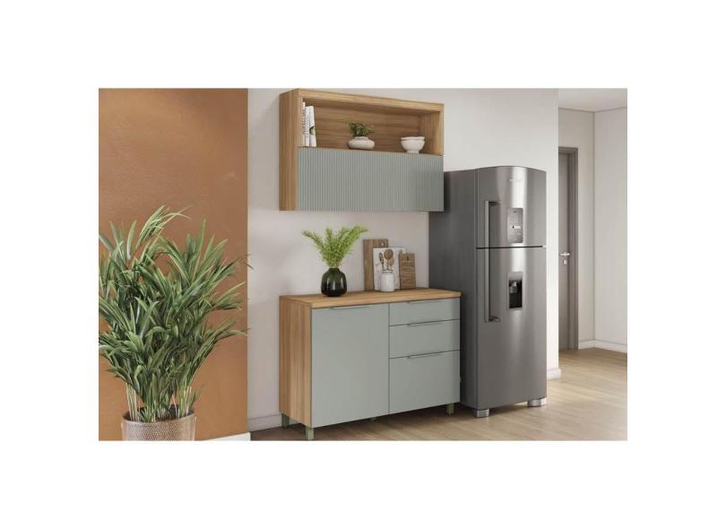 Cozinha Modulada Completa Marquesa 2 Peças (1Aéreo+1Balcão) C2P29 Nature/Verde - Nesher